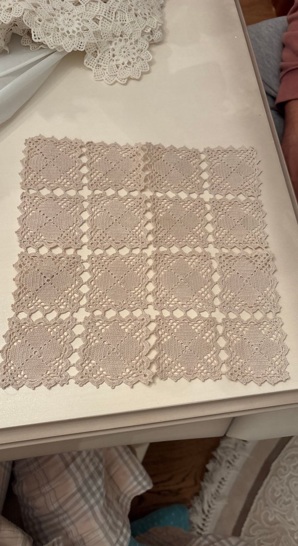 Vintage El Yapımı Krem Renkli Dantel örtü