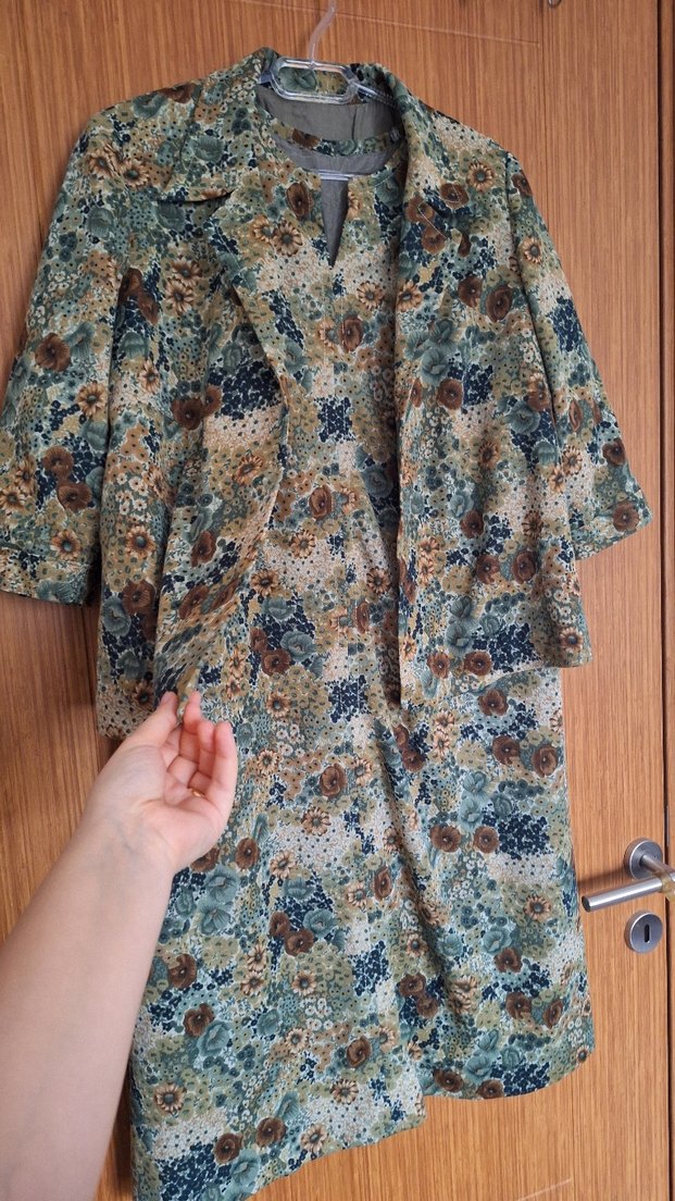 Vintage özel dikim elbise. Eski tarz bir kumaşa sahip olup vintage görünümü vardır. Kısa kol elbisesi ve üzerine ceketi mevcuttur. M-L-Xl beden uyumludur. İç astarında sökük oluşmuş, kolayca dikilebilir. Alana şimdiden hayırlı olsun. Sevgilerimle...