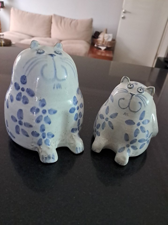 Vintage England Seramik Sanatçı imzali Obez Kedi Ailesi. [İkili].Çok tatlilar.Dekoratif güzellik.Ebatlar resimlerde mevcut.İkili fiyatidir.Video çekimli.[02/571]