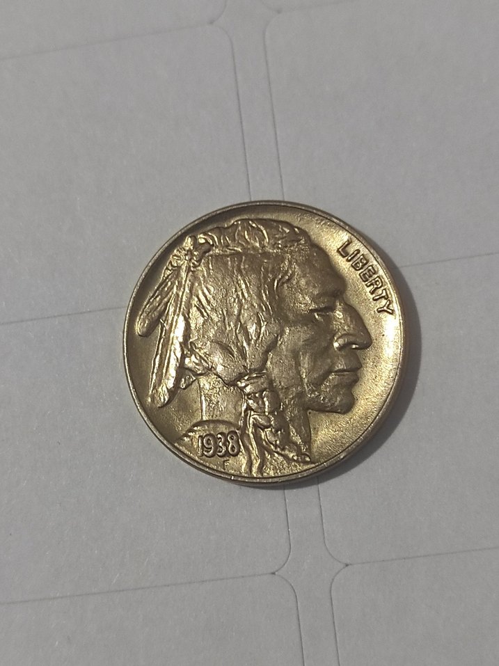 Parlak altın renkte, 1938 tarihli, yerli Amerikan figürlü vintage erkek rozeti. Eskimiş, karşı kültür tarzını yansıtır. ✨