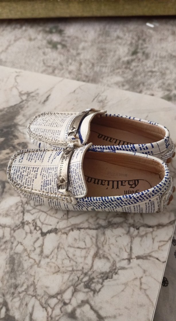 Erkek çocuklar için baskılı, tokalı loafer ayakkabılar, beyaz ve gri tonlarda trend ve rahat bir stil sunar. İTALYA URETİMİ numara yazmıyor