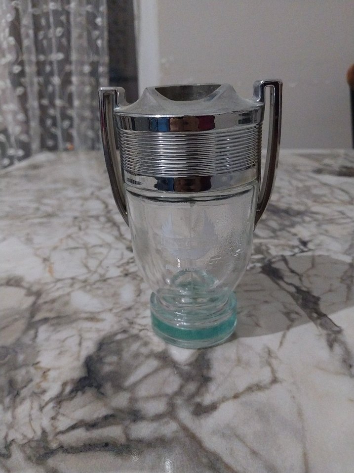 Parlak beyaz tasarıma sahip vintage erkek parfümü, kupa şeklinde şişesiyle dikkat çekiyor. Karşı kültür tarzını yansıtıyor.