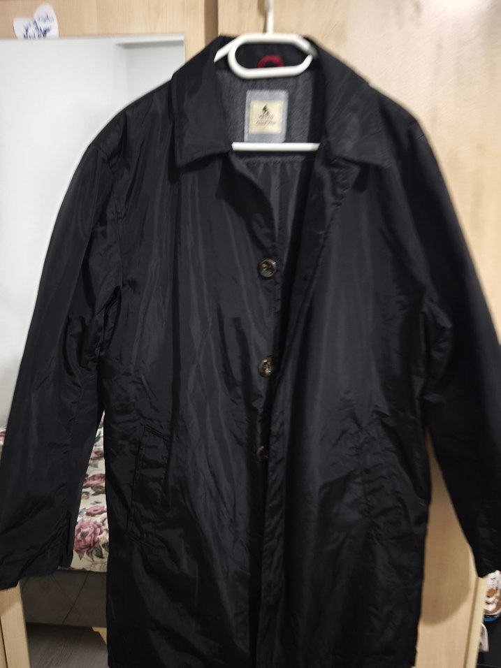 Erkekler için siyah düğmeli, yarım uzunlukta, notalı yaka ve uzun kollu ceket. Rahat kesimli, suni kumaştan, günlük ve iş stiline uygun.