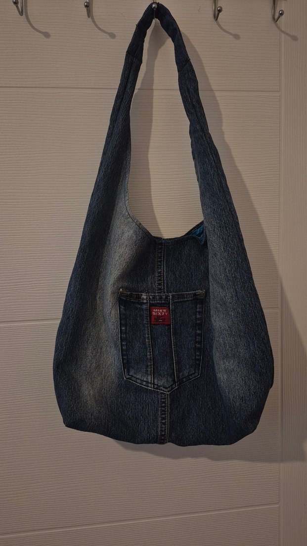 Vintage Eskitilmiş Kot Kadın Omuz Çantası