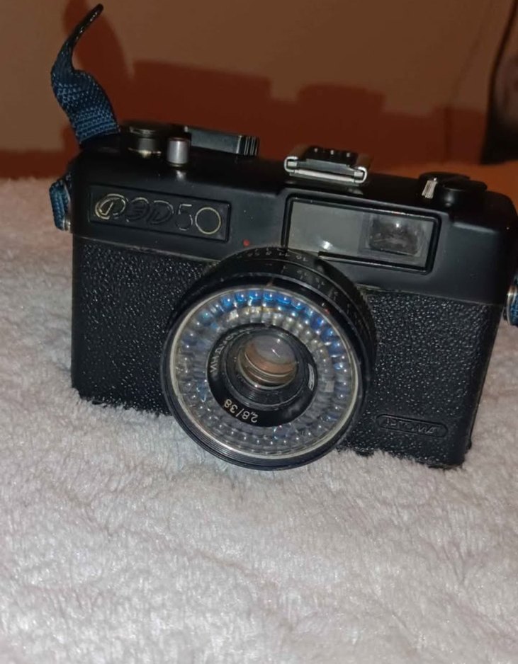 Manuel kontrolleri ve 28mm lensi olan siyah retro filmli fotoğraf makinesi. Analog fotoğrafçılık için uygundur.