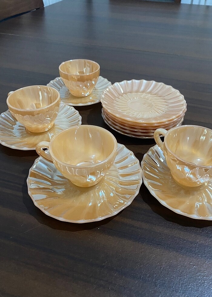 40 yıllık fincan fotoğrafta göründüğü gibi 10 adet tabak 4 adet fincan var