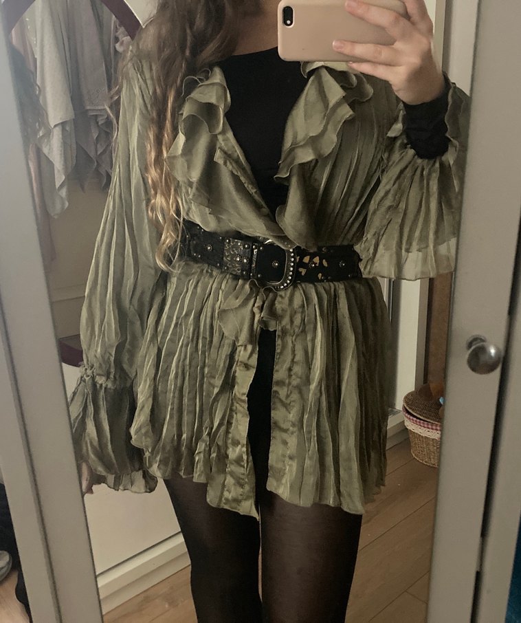 cok severek almıstım ben kemerle bu sekilde kombinlemistim baya bol üstümdeki gibi oversize durus M beden icin L-Xl bedene kadar uyar