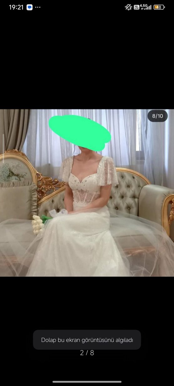 1 kere kullanıldı, temiz , Defo yok. Nikahta giyildi. 38 beden, M , balon kol, tarlatanı içerisinde verilecektir