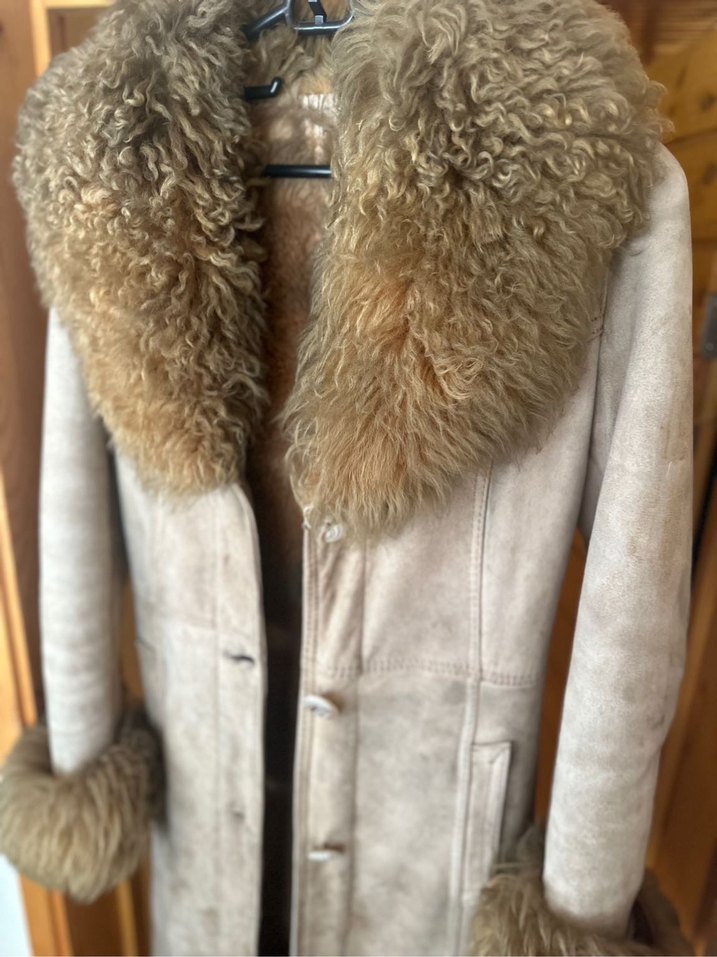1970lerden kalma orjinal kuzu postu kaban 115cm uzunluk dugmeler kapandiginda yaklasik 90cm bel kalinligi mevcut Meraklisina.. model 1.78 cm 60 kg Tek düğmesi kopmuştur