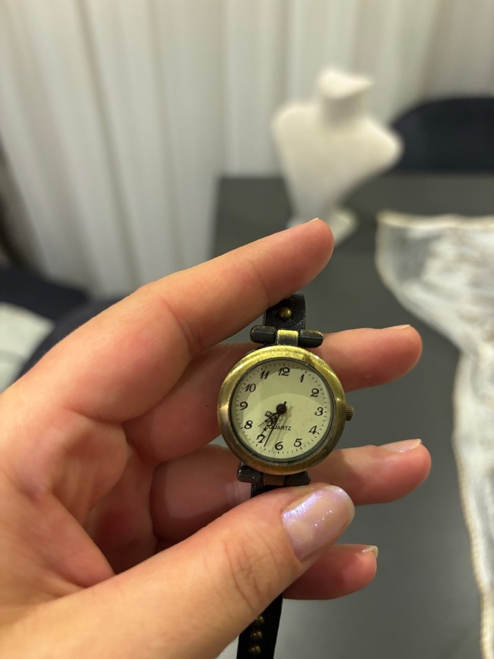 Yuvarlak altın renkli kasası ve tokalı gri kayışı ile vintage tarzda kadın saati. Kadranda klasik rakamlar bulunur. ⌚ Uzun kayışlıdır bir kaç kere dolanmaktadır. Pili değiştiğinde çalışacaktır Defosu yoktur