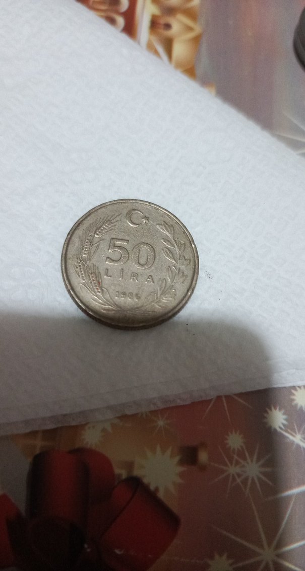 Vintage Gri 50 Lira Madeni Para Rozeti
