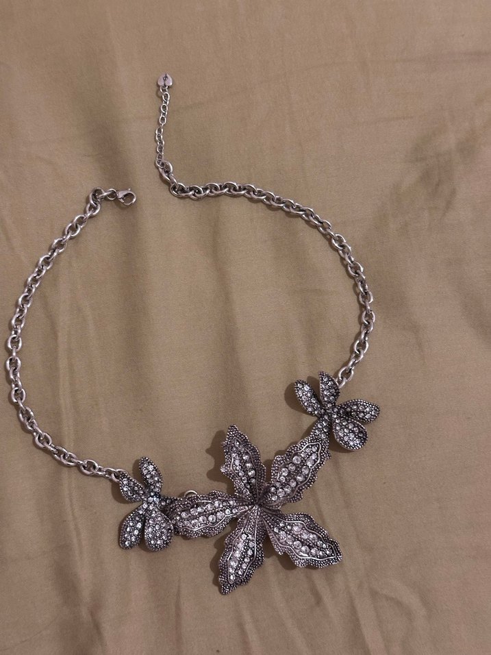 Vintage Gri Çiçekli Zincir Kolye Stradivarius