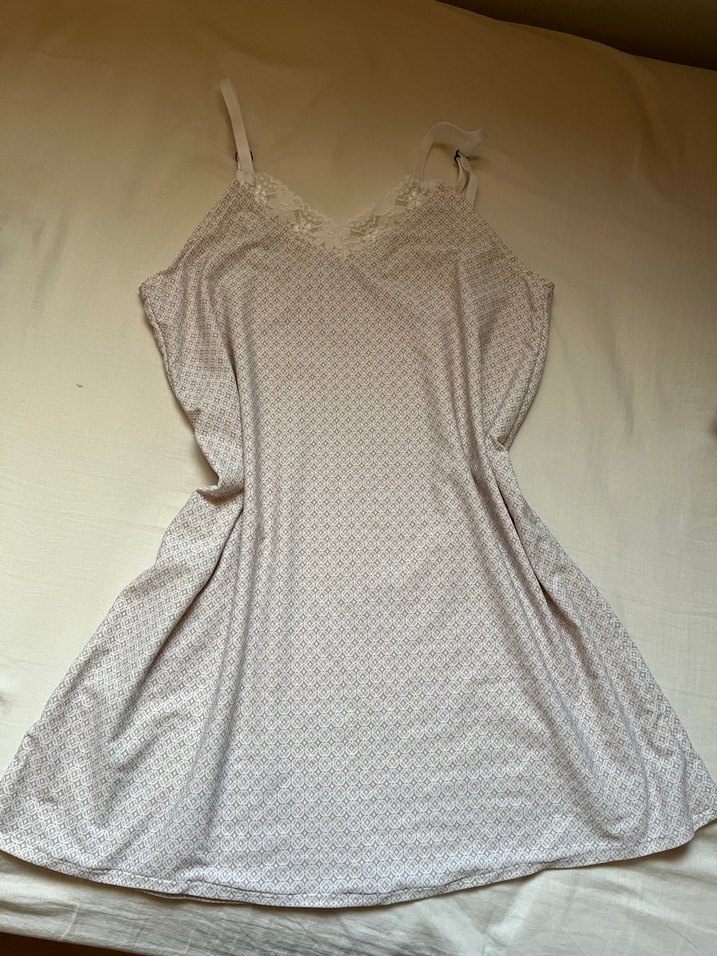 Bohem vintage tarzda, ince askılı ve gri desenli, bol kesim midi gecelik. Yumuşak ve rahat kumaşla dinlendirici uyku sağlar. Boy 51 cm 38-40 beden için uygundur Büyük olduğu için hiç kullanmadım