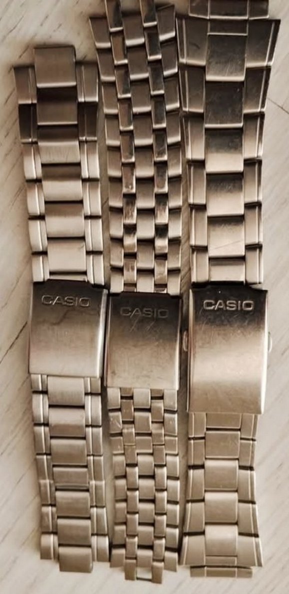 Gri metal saat kordonları, vintage ve karşı kültür tarzında, Casio markalı. Altın tonlarında, klasik ve eski tarz görünüme sahiptir. ⌚