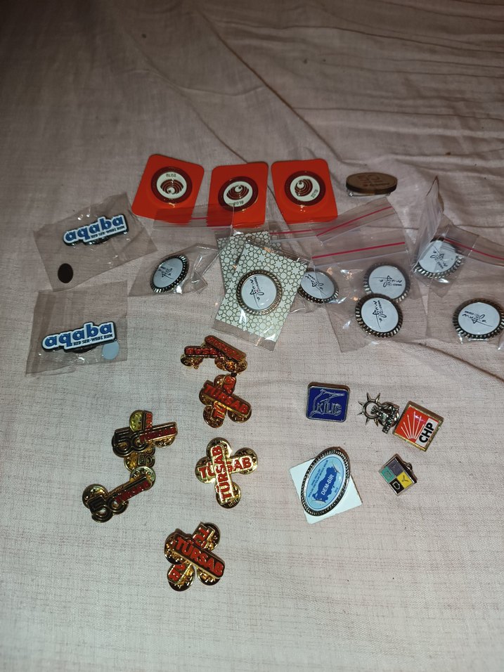 Gri ve beyaz renklerde, vintage tarzda erkek rozetleri koleksiyonu. "aqaba" yazılı ve çeşitli simgelerle tasarlanmış rozetler içerir. ️