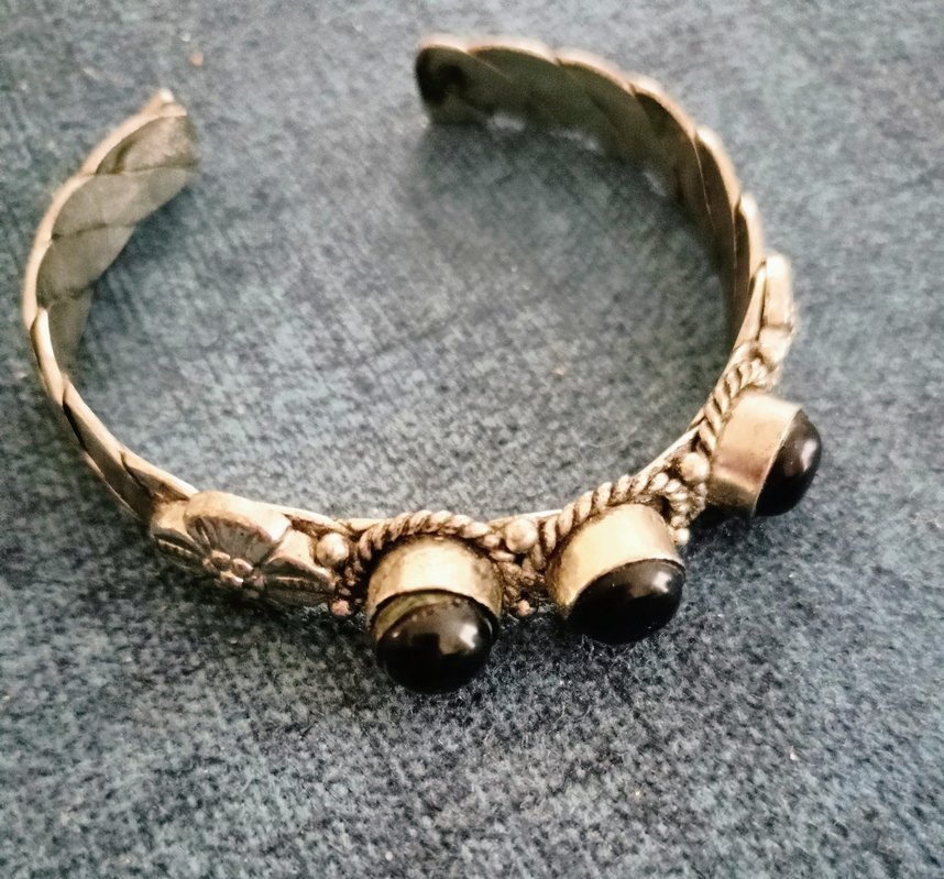 koyu boncuk detaylıvintage tarzı Alman gümüşü bileklik, günlük kullanıma uygun goth stilini yansıtıyor.kararmaz