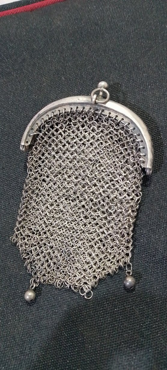 Eski nadir görülen gümüş bir parça iki gözü olan para yada altın gümüş kesesi kapatma yerinde bir kopçası kopmuş