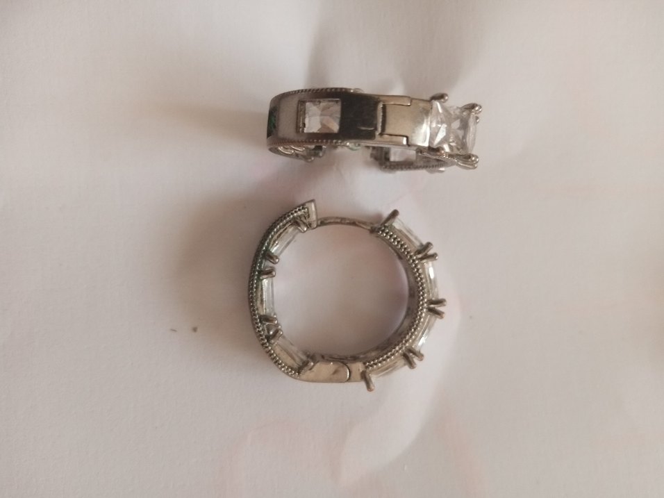 Vintage tokalı, kısa uzunlukta, gümüş renkli ve şeffaf taş detaylı mini küpeler, düğünler için uygun.