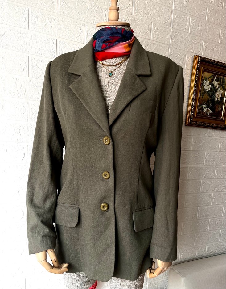 Haki vintage blazer ceket Harika ürün, krep kumaş ama tok dokuda. Boy 72cm, iki koltuk arası 50cm, kol boyu 63cm. Vatkalıdır. 42beden. #jadedlondon #indie #grunge #urbanoutfitters #anime #lesbenjamin #subdued #faircore #grunge #vondutch #salaş #goth #oversize #lolita #urban #kargo #cargopant #aethetic #dollkill #newgirlolder #ekoe #bdg #uo #y2k #90s #2000s #vintage #retro #kolej #oldschool #unique #fairy #yazlık #kargo #ispanyolpaça #dönem #90lar #zara #mango #bershka #klasik #şık #inditex #lüks #lüksgiyim #aksesuar #levis #zara #mango #bershka #pullandbear #pinterest #hippi #etnik #victoriasecret #vs #beymen #scarf #ipek #officesiren #office #kore #çanta #etek #minietek #pamukkumaş #deriçanta #deri #2000sçanta #dolcegabbanaçanta #pinterestçanta