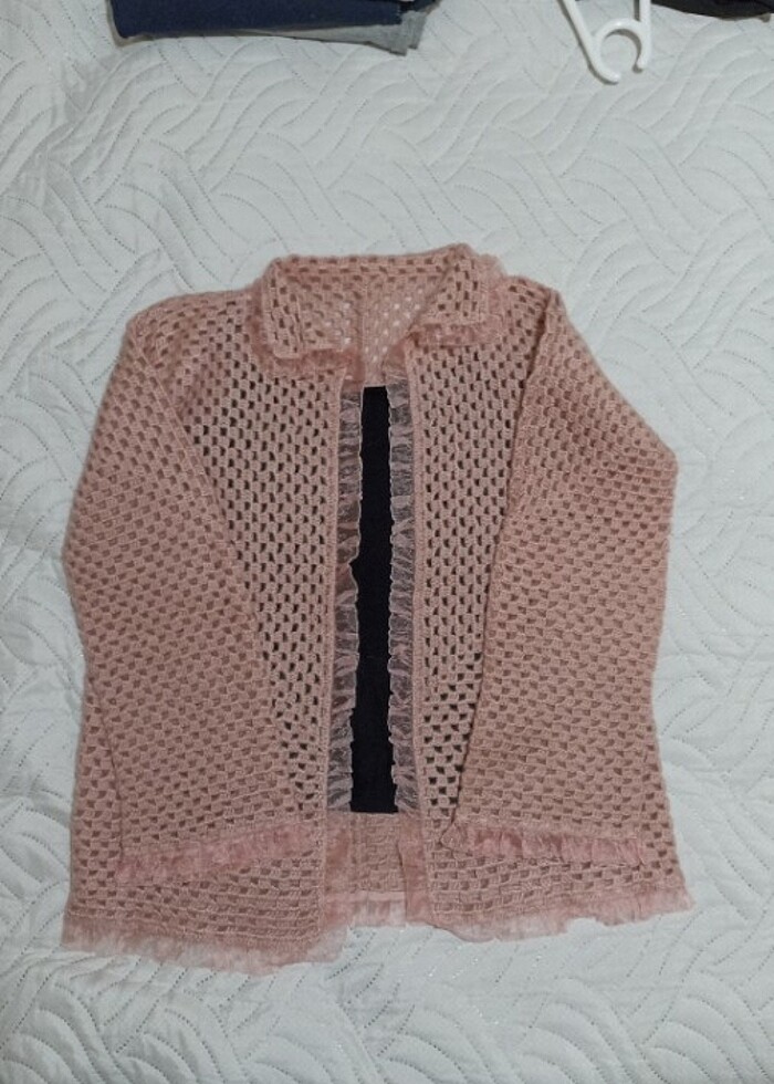 Ürün el örgüsüdür. Bana hediye olarak geldi. Örgü ürünler giyemedigim için hic kullanmadım görselleri yakından çektim özellikle yünlü bır ürünün giyilmedigi çok net anlaşılır zaten . Bebek pembesi rengindedir .