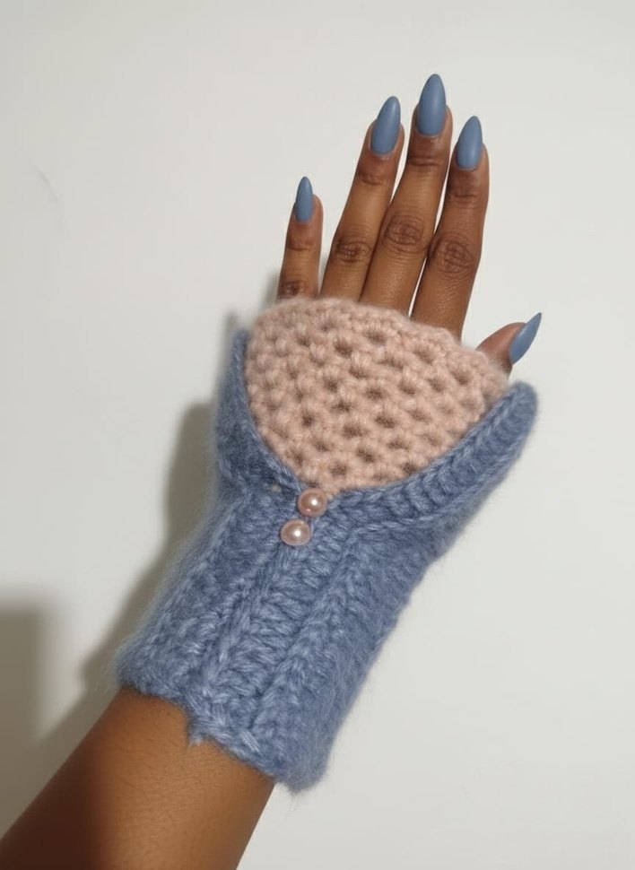 Vintage Esintili İncili Parmaksız Eldivenler ✨ Soğuk günlerde ellerinizi sıcak tutarken şıklığınızdan ödün vermeyin. Retro tasarımıyla hem nostaljik bir hava katan hem de parmaksız yapısıyla telefon kullanımında büyük kolaylık sağlayan bu eldivenler, tamamen el emeği ile hazırlandı.Mavi Pudra kombinasyonu.. #parmaksızeldiven #vintageeldiven #handmade