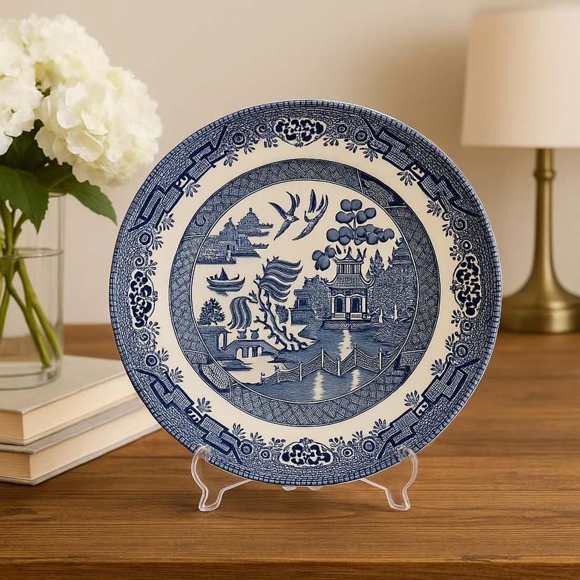 Koleksiyonluk İngiliz üretimi Wessex Collection porselen tabak. Çok temiz, kırık/çatlak yoktur. Nadir bulunan mavi “Blue Willow” desenli klasik vintage modeldir. Dekoratif olarak çok şık durur. Stant ile birlikte satılmaktadır. Fotoğraflardaki ürün, Wessex Collection – Made in England damgalı, klasik “Blue Willow / Mavi Söğüt” desen Blue Willow deseni; Çin efsanesinden ilham alan, kuşlar, köprü, pagoda ve söğüt ağaçlarının bulunduğu, koleksiyonerlerin çok sevdiği tarihi bir motif. Marka: Wessex Collection ▪ Menşei: İngiltere üretimi (Made in England) ▪ Model: Blue Willow – Mavi Söğüt Desenli ▪ Materyal: Yüksek kalite porselen ▪ Durum: Temiz, çiziksiz, kırık/çatlak yok. ▪ Kullanım: Dekoratif sergileme, koleksiyon, vitrin tabağı veya servis tabağı olarak kullanılabilir. ▪ Ekstra: Plastik şeffaf stant dahildir. Ortalama bu modeller: 26–28 cm olur. #porselen #bluewillow #ingilizporseleni #koleksiyon #vintage #antik #tabak #dekoratifürün #wessexcollection #madeinengland #sergilik