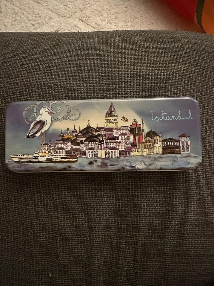 Vintage İstanbul Baskılı metal kalem kutusu