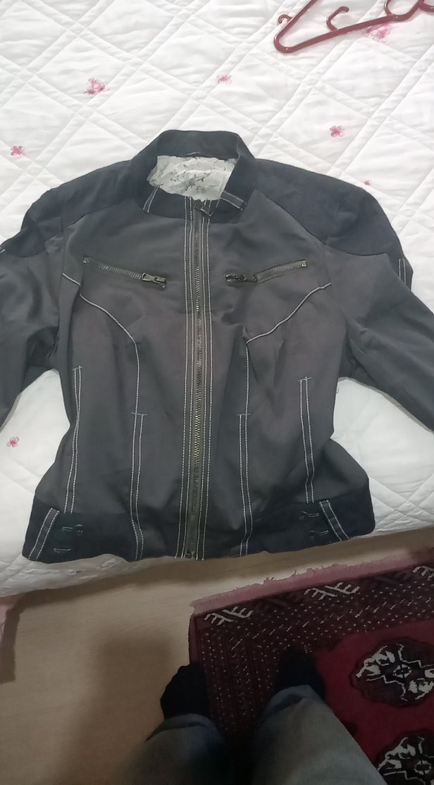 Uzun kollu, notched lapel yaka ve fitted kesime sahip kadın vintage biker ceketi. Midi boydadır ve günlük sokak stiline uygundur.