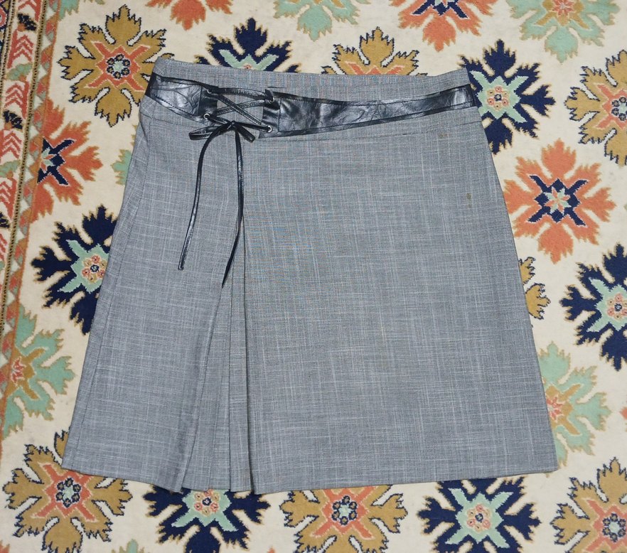 Gri mini etek, deri kemer detaylı. Yumuşak kumaştan üretilmiş, ofis ve iş tarzına uygun tarz bir tasarım. Şık, güzel ve çok rahat. Sadece ufacık bir lele var. Kullanıma engel değil. Fiyatı uygun tuttum bu yüzden. Gönül rahatlığıyla kullanabilirsiniz.
