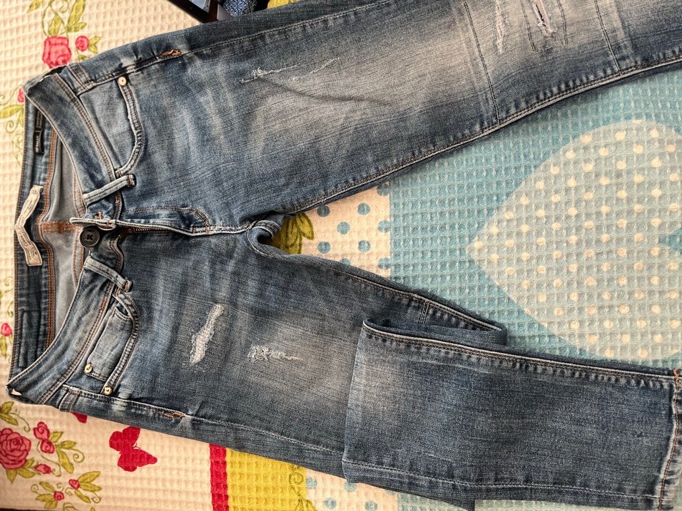 Gri-mavi tonlarında, kemerli detaylı, normal midi boy, fitted kesim kadın denim kot pantolon, gündelik kullanıma uygun.