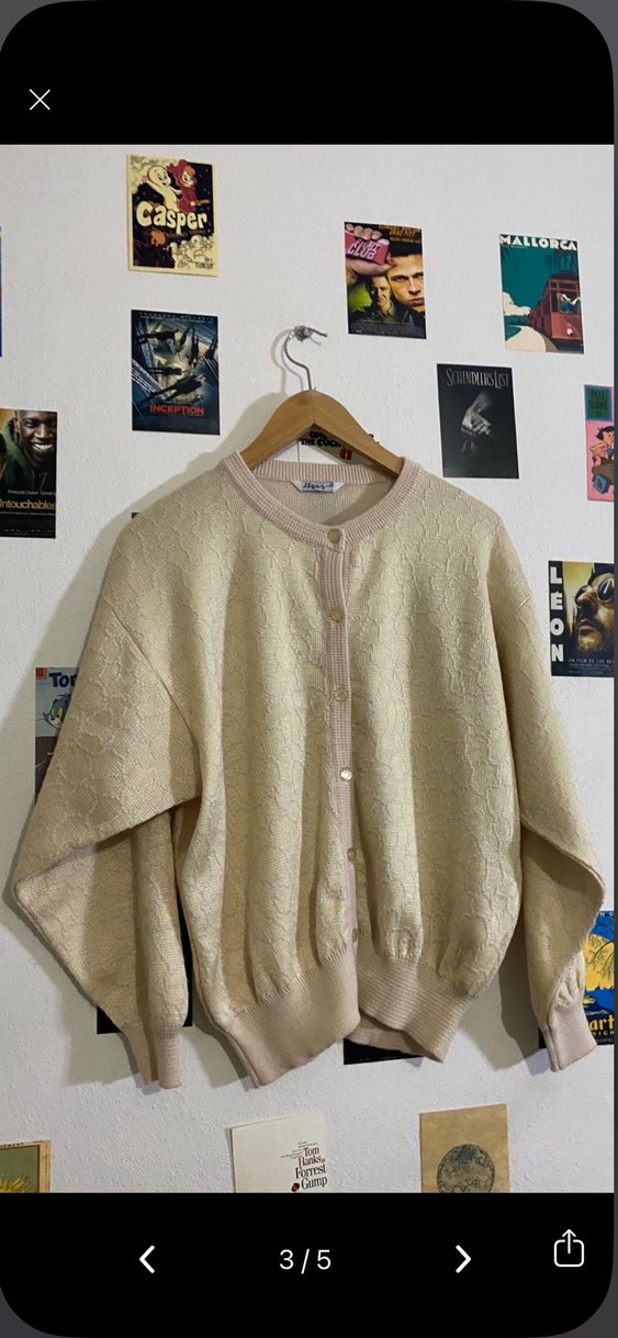 Bej renkli, uzun kollu, yuvarlak yakalı, rahat kesim örgü kadın hırka. Sokak stiline uygun, midi boyda ve yumuşak dokulu. M L uyumlu