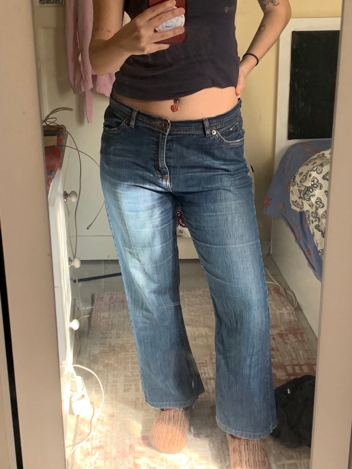 Vintage Kadın Mavi Bol Kesim Midi Kot Pantolon
