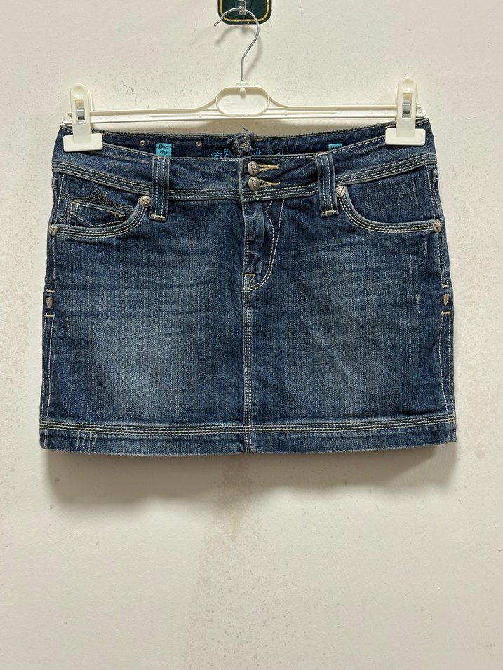 Bu kadın mavi denim mini etek, kemerli ve vücuda oturan kesime sahiptir. Günlük kullanıma uygun, rahat sokak stili bir parçadır.