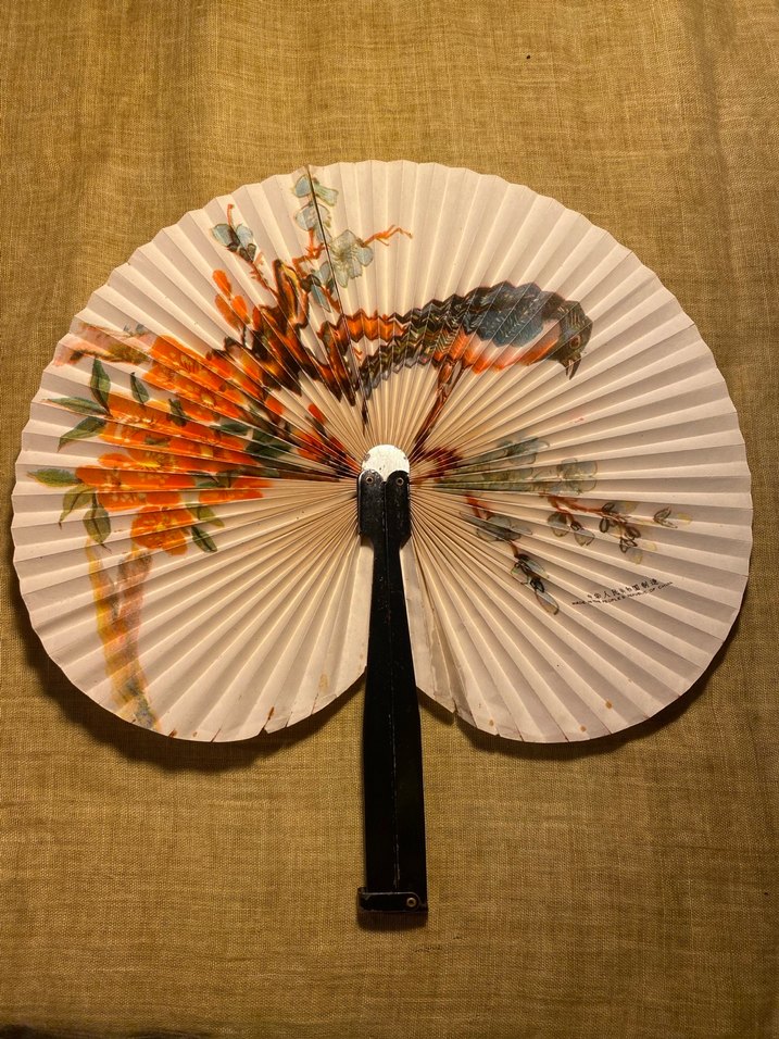 Eşsiz vintage kağıt yelpaze. Harika bir koleksiyon parçası. Minik bir yırtığı özenle yapıştırılmış, kullanıma engel değildir (görselde mevcut). Sanatsal deseniyle hem dekoratif hem fonksiyonel. Nostaljik ve zarif bir aksesuar arayanlar için ideal. Stil: Oriental Vintage / Retro Chic. #Yelpaze #VintageAksesuar #Koleksiyon #RetroTarz #OrientalDecor #NostaljikParcalar #DuvarDekoru #AntikaGörünüm #ZarifAksesuar