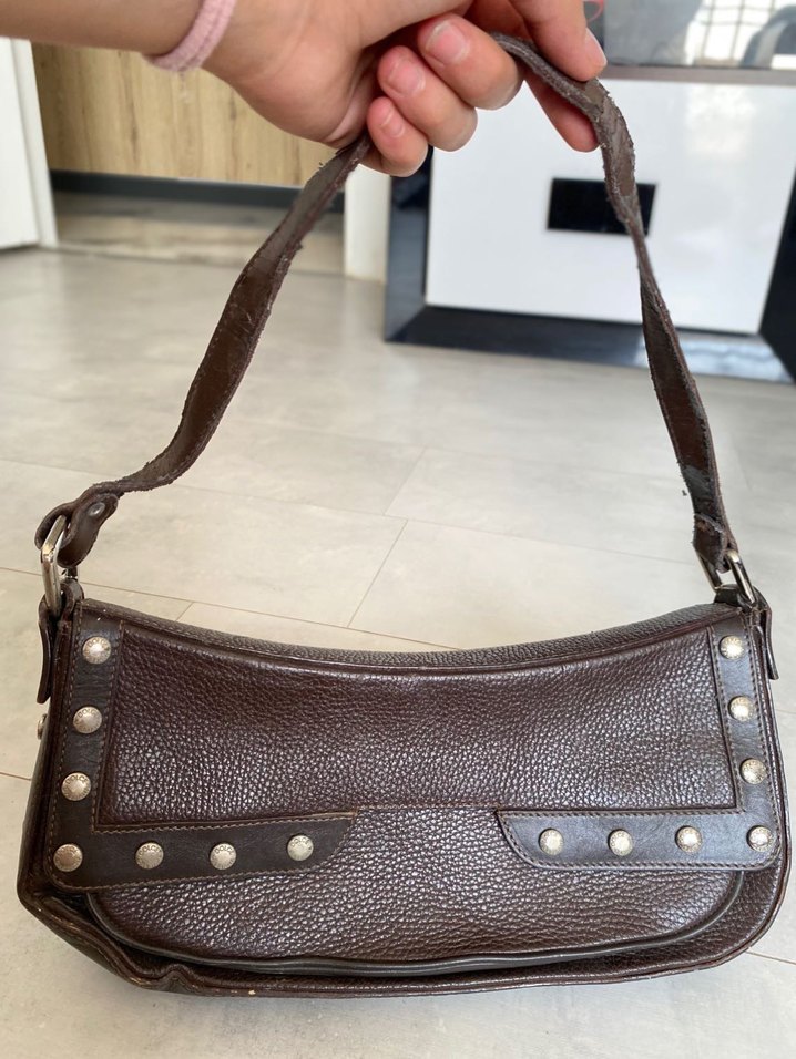 Vintage Kahverengi Deri Tokalı Kadın Çanta