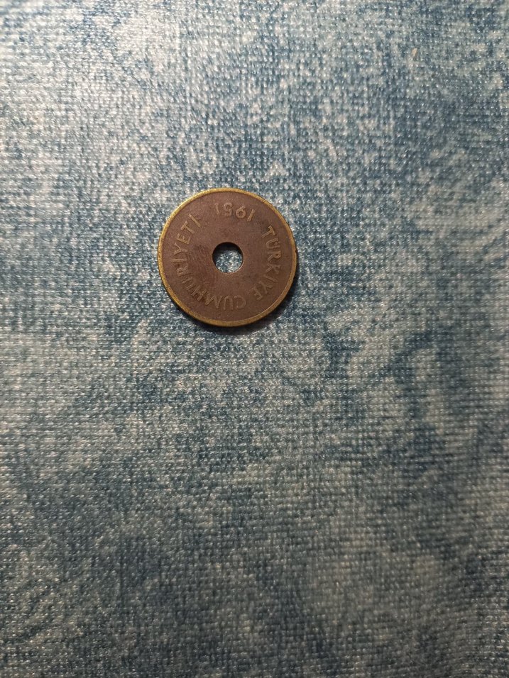 1951 tarihli, ortasında delik bulunan, parlak kahverengi tonlarda vintage erkek rozeti. eski para