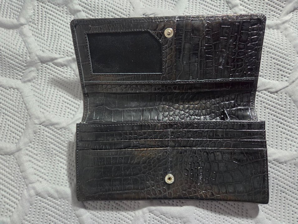 Kahverengi yılan desenli deri kadın cüzdanı, tokalı detaylı ve günlük kullanıma uygun.