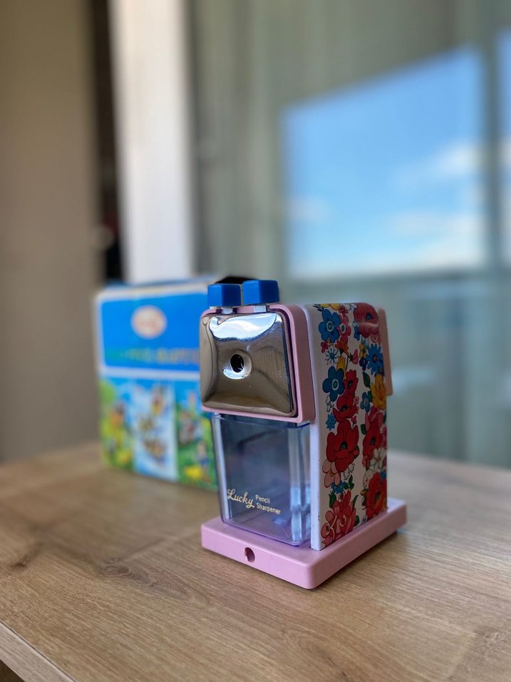 Luck Pencil Sharpener. 1980 lerden Masaüstü metal kollu kalemtraş, kutusu ve masaya sabitleme aparatı vardir. Kalem açması sorunsuzdur. Koleksiyon ve kullanıma uygundur. Her türlü radyo kasetçalar eski telefon vb vintage objeler alım satım takas için ulaşabilir daha fazlası için diğer ilanlarımı inceleyebilirsiniz