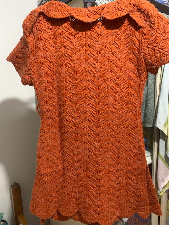Vintage Kısa Kollu V Yakalı Örgü yünlü Elbisesi