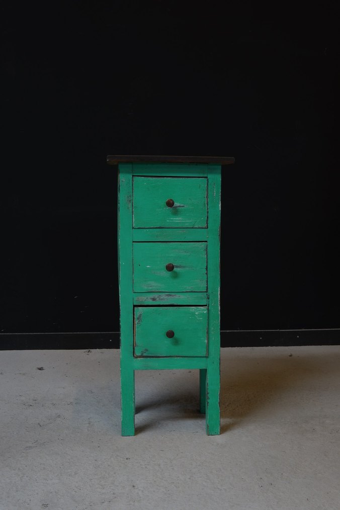 Üç çekmeceli, eskitme tekniği kullanılarak boyanmıştır defolu değildir monte şekilde gönderilecektir