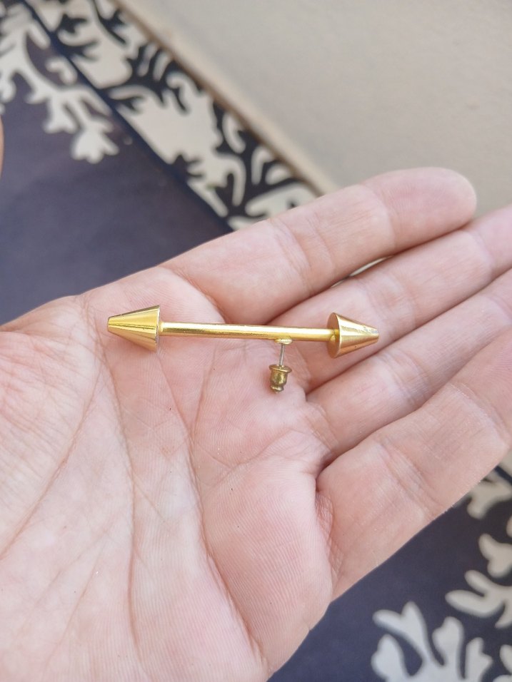 Parlak altın renkli, püsküllü kadın kol düğmesi. Minimalist ve bohem tarzda, günlük kullanım için sade ve desensiz tasarım. ✨