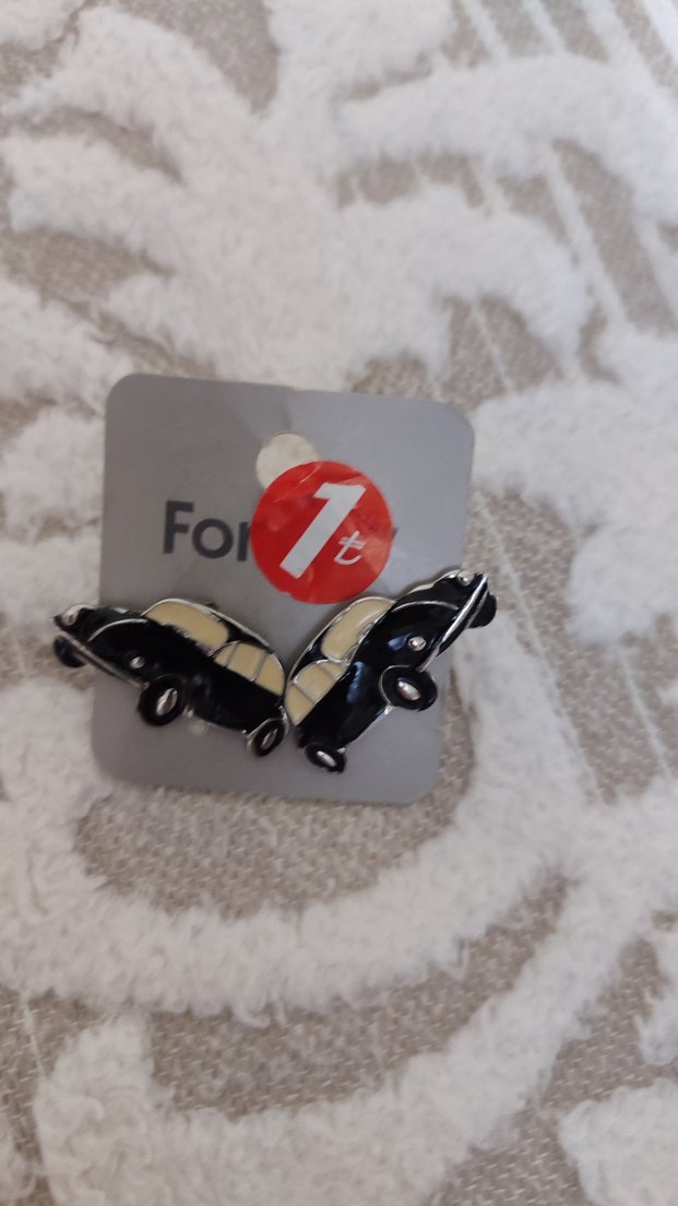 Siyah ve gri renklerde, klasik araba figürlü vintage tarzda küpe. Yıllar önce alınmış, hiç kullanılmadı...