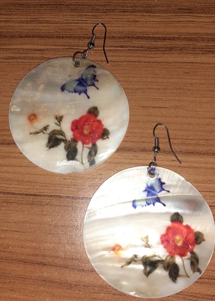 Avrupa ürünü vintage küpe. Birinin alt köşesinde kırık var fakat yüzey rengi benzer olduğundan fazla göze batmıyor. Kusuru fotoğraflarda görebilirsiniz.