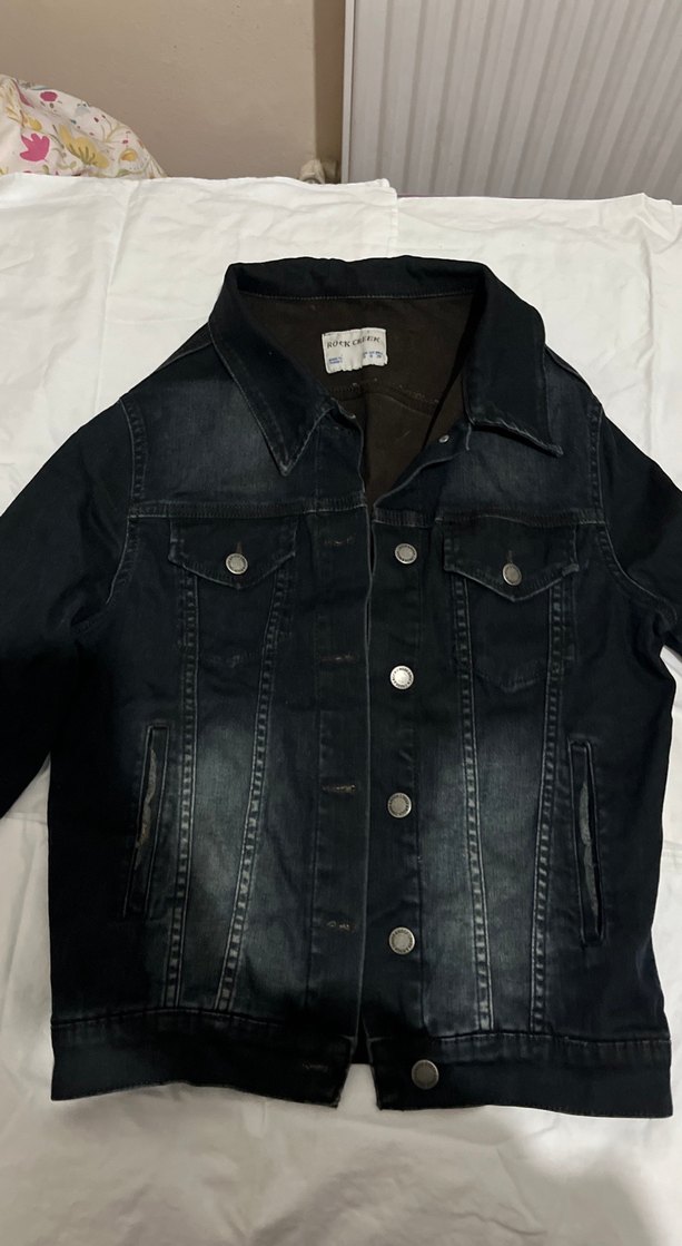 Düğmeli, siyah kot kumaştan, notched lapel yakalı, uzun kollu, fitted kesim kadın ceket. Günlük kullanıma uygun casual tarzda.