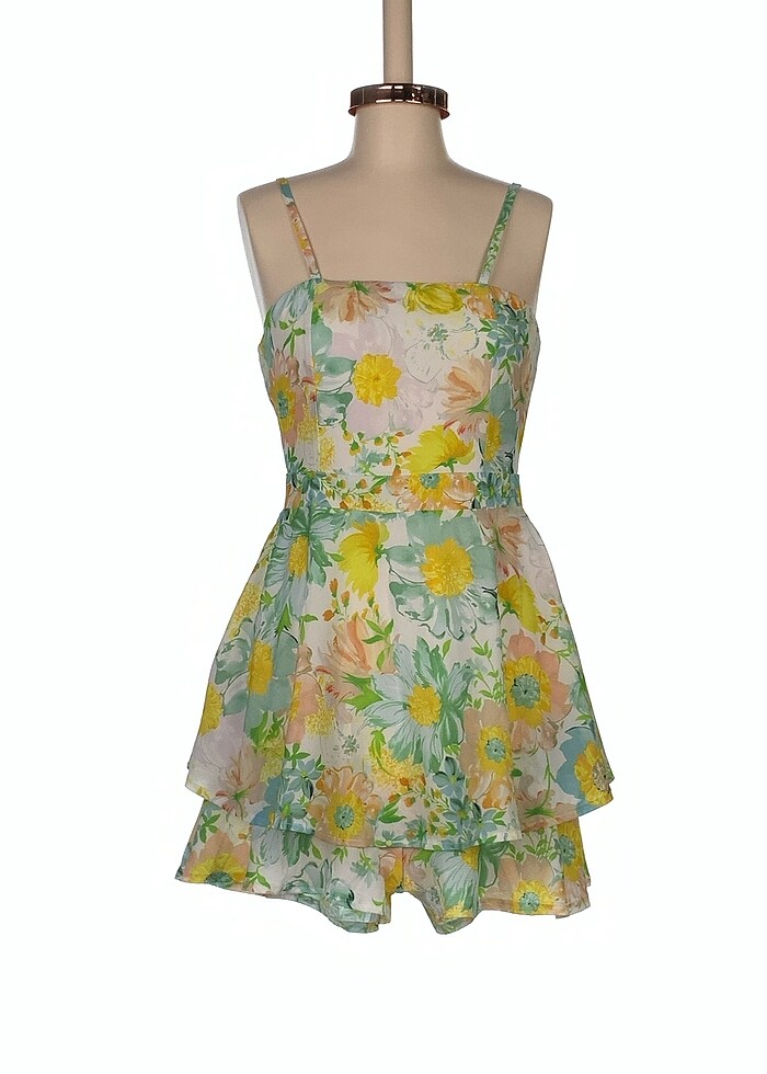 askılı fırfırlı kendinden desenli Malzemeler Polyester, Pamuk Ölçüler Göğüs: 38cm, Uzunluk: 84cm Aynı gün kargoya verilir. Kontrolleri Gardrops tarafından yapılmıştır.