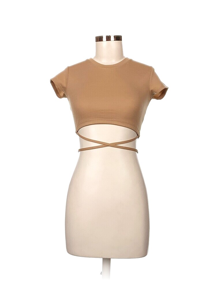 bağlama detay yuvarlak yaka kısa kol Malzemeler Polyester, Streç/likralı kumaş Ölçüler Göğüs: 36cm, Uzunluk: 31cm Aynı gün kargoya verilir. Kontrolleri Gardrops tarafından yapılmıştır.