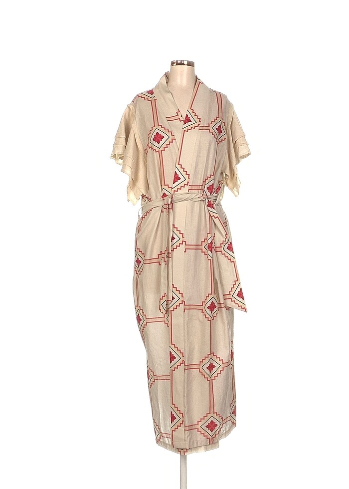 kısa kol kuşaklı kruvaze yaka Malzemeler Pamuk Ölçüler Göğüs: 50cm, Uzunluk: 120cm Aynı gün kargoya verilir. Kontrolleri Gardrops tarafından yapılmıştır.