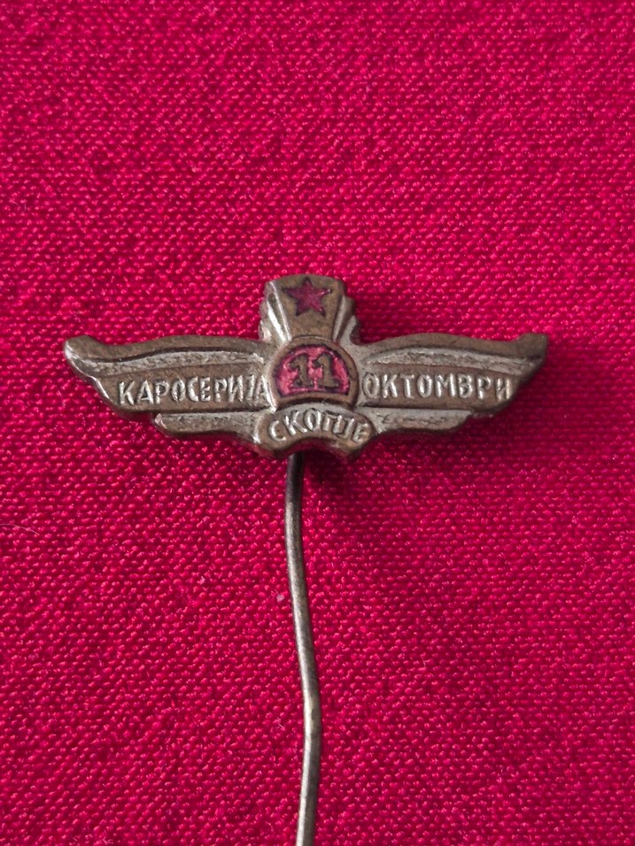 VİNTAGE MAKEDONYA ROZET Üsküp (Skopje) merkezli ünlü 11 OKTOMVRİ (11 Ekim) otobüs karoseri fabrikasına aittir.1946 yılında kurulan bu fabrika, özellikle Türkiye'de de çok iyi bilinen SANOS marka otobüslerin üreticisidir.NADİR