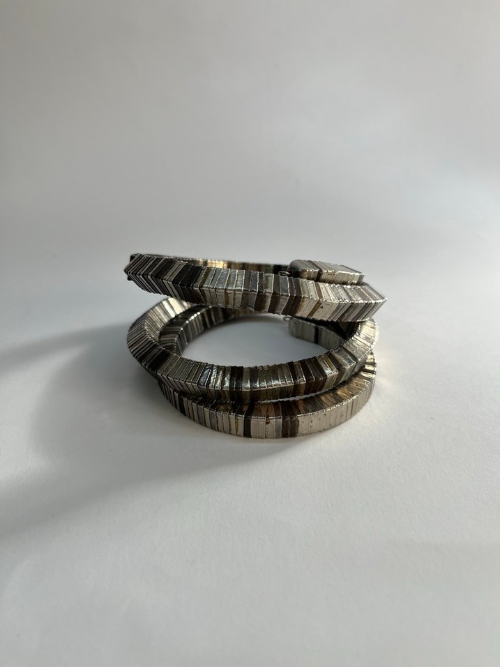 Spiral kısmında yamukluk mevcuttur ancak kullanıma engel değildir. Metal boncuklarında renk deformasyonları mevcuttur. Çap: 6,5 cm