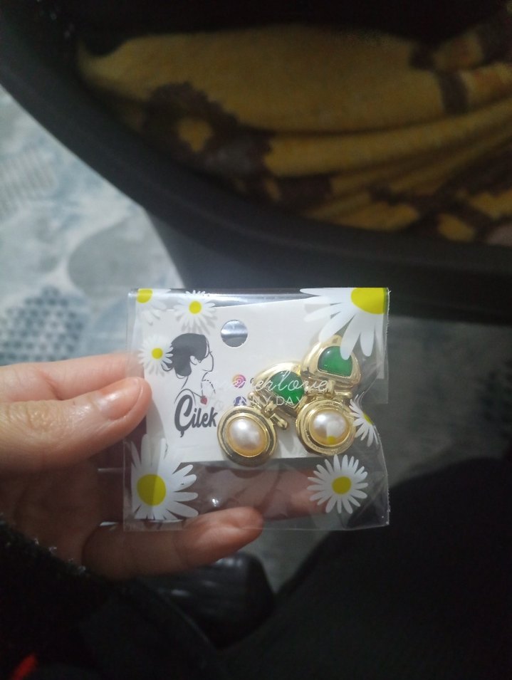 Parlak yüzeyli, pastel tonlarda, baskılı detaylı mini altın renkli vintage tarzda küpe, günlük kullanım için uygun.